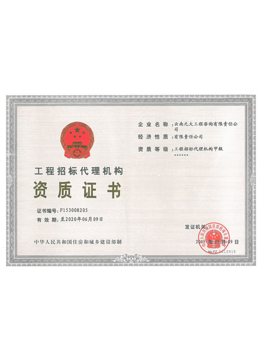 公司是云南省招標(biāo)投標(biāo)行業(yè)協(xié)會會長單位,現(xiàn)為云南省住建廳信用評級招標(biāo)代理機(jī)構(gòu)AAA級單位。公司先后榮獲住建部頒發(fā)的“工程招標(biāo)代理機(jī)構(gòu)甲級資質(zhì)證書”、財(cái)政部頒發(fā)的“政府采購代理機(jī)構(gòu)甲級資格證書”,并在財(cái)政部及中國政府采購網(wǎng)“政府采購代理機(jī)構(gòu)名單”登記備案、獲得國家發(fā)展改革委頒發(fā)的“中央投資項(xiàng)目招標(biāo)代理機(jī)構(gòu)甲級資格證書”、商務(wù)部頒發(fā)的“國際招標(biāo)機(jī)構(gòu)預(yù)乙級資格證書”、機(jī)電產(chǎn)品國際招標(biāo)電子交易平臺頒發(fā)的“機(jī)電產(chǎn)品國際招標(biāo)電子交易證書”、國家國防科技工業(yè)局頒發(fā)的“軍工涉密業(yè)務(wù)咨詢服務(wù)安全保密條件備案證書”。公司已通過ISO9001:2015質(zhì)量管理體系認(rèn)證、ISO14001:2015環(huán)境管理體系認(rèn)證、ISO45001:2018職業(yè)健康安全管理體系認(rèn)證。納稅信用評價(jià)已連續(xù)三年被評為A級......